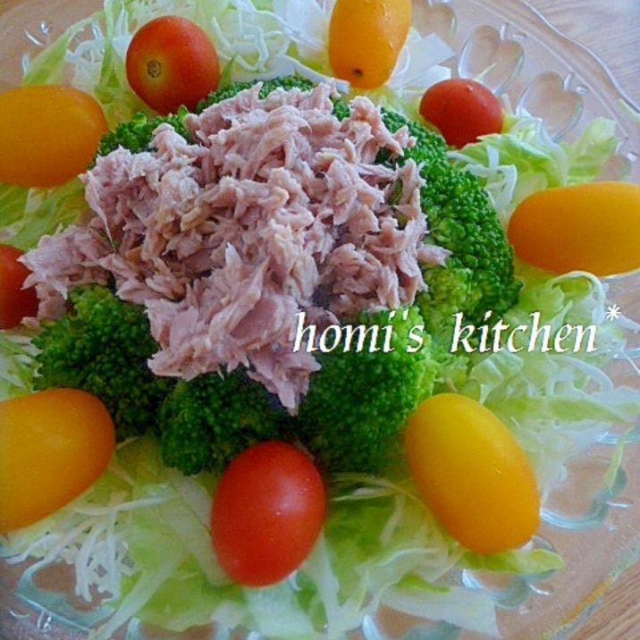 | ② | ①の器に茹でたブロッコリー(粗熱をとったもの)とシーチキンをのせる。 |