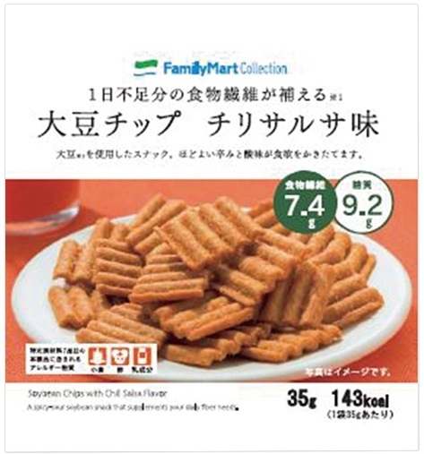 ファミリーマート:1日不足分の食物繊維が補える大豆チップ チリサルサ味