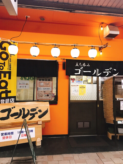 続いては、立ち呑みゴールデンです。老舗ではなくオープンしてからそれほど時間がたっていない店舗ですが、店内はレトロで昭和な雰囲気が漂っている空間なのが特徴的です。